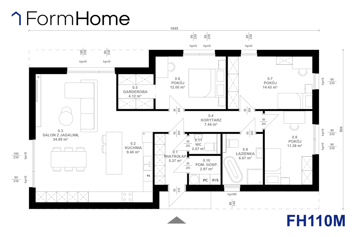 | 0.3 | SALON Z JADALNIĄ | 34,9 m² |