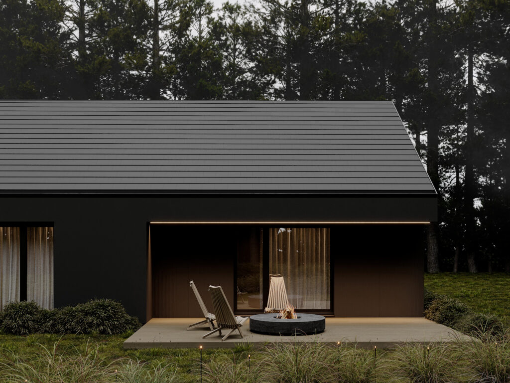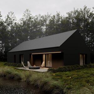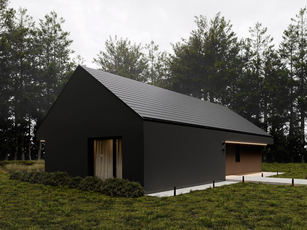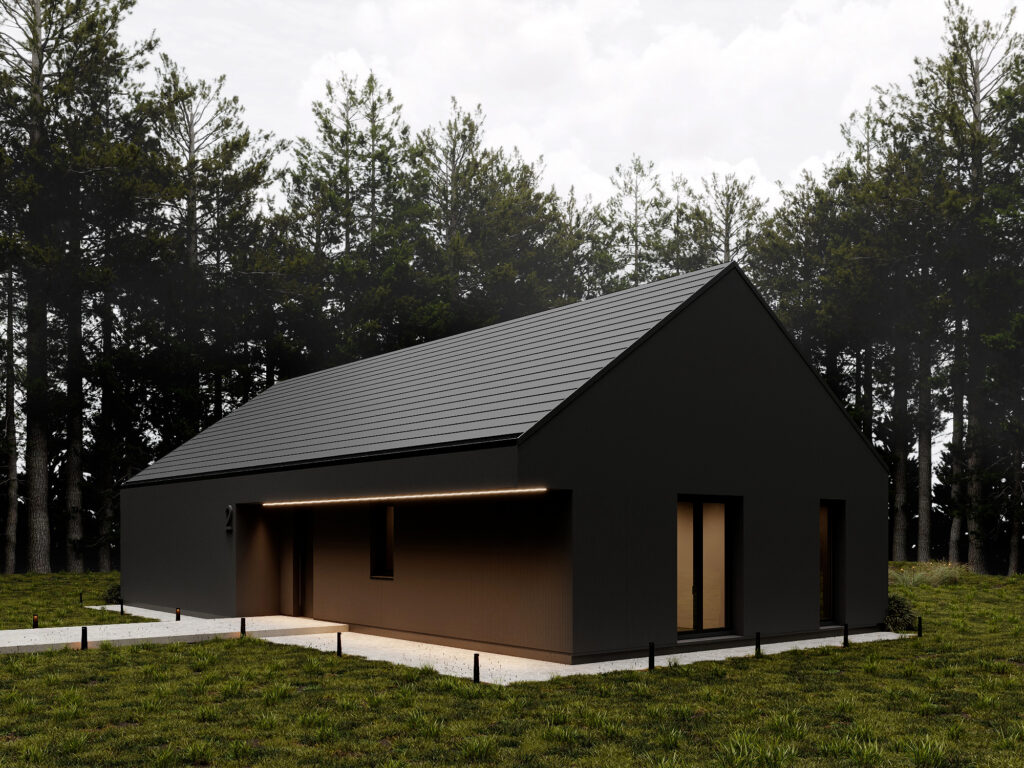 Stylowy dom parterowy łączący nowoczesność z funkcjonalnym rozkładem pomieszczeń. Otwarta strefa dzienna z dużymi przeszkleniami wypełnia wnętrze naturalnym światłem tworząc efekt przestronności. Część prywatna obejmuje trzy komfortowe sypialnie, garderobę oraz łazienkę. Dodatkowe pomieszczenie gospodarcze i osobna toaleta zwiększają codzienną wygodę użytkowania. To idealny wybór dla osób ceniących nowoczesny design, przestrzeń i praktyczne rozwiązania.