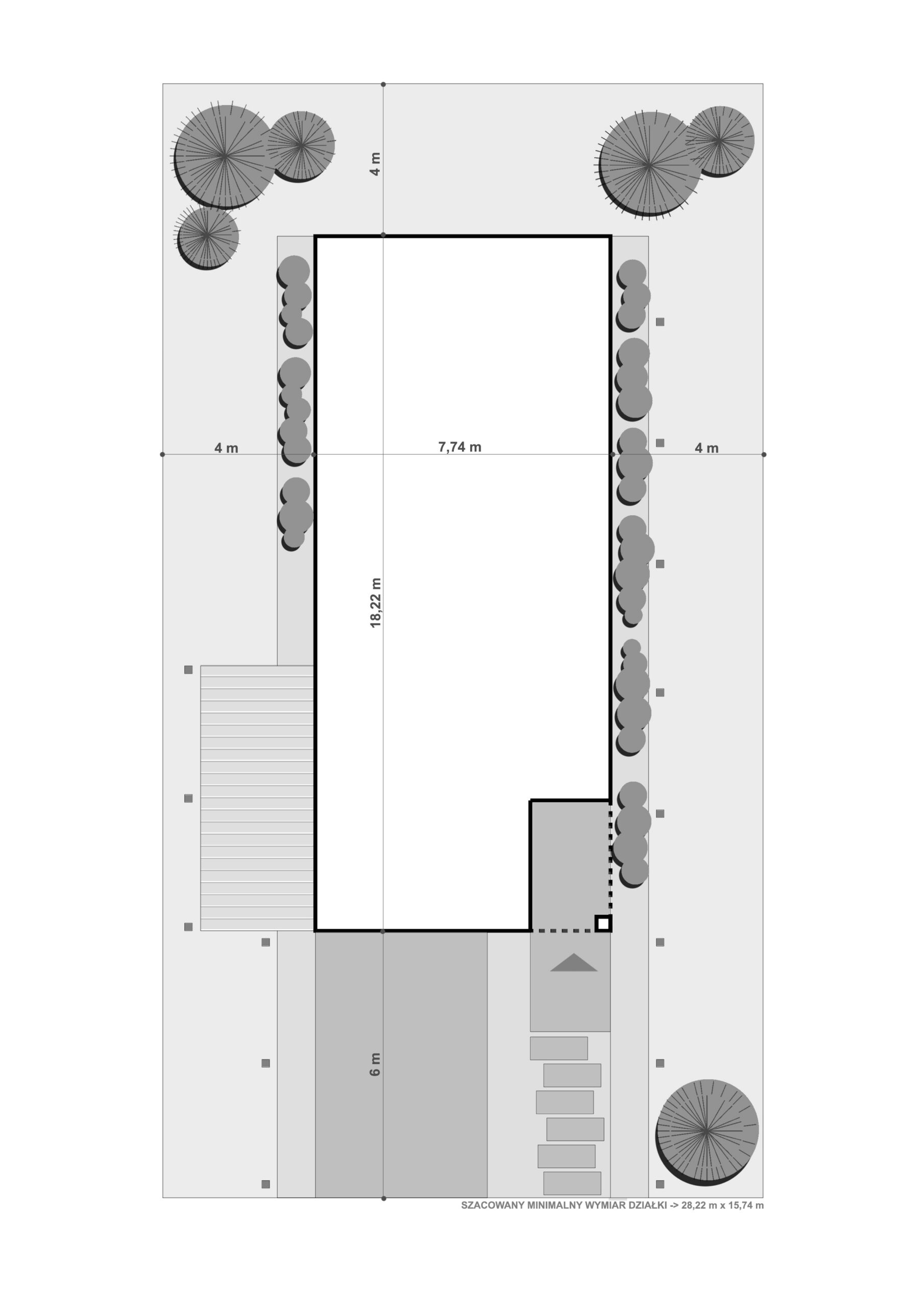 Minimalne wymiary działki 15,74m x 26,22m