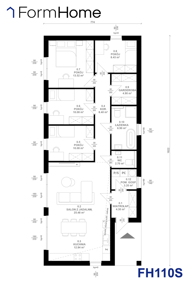 Wymiary budynku 7,74m x 18,22m