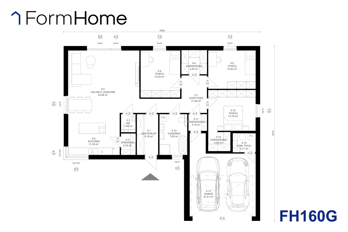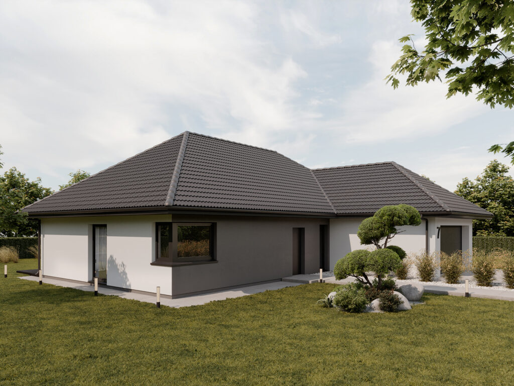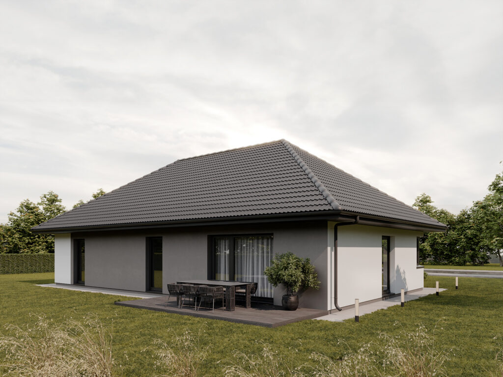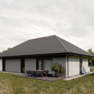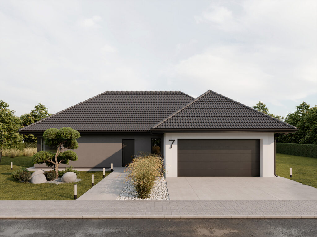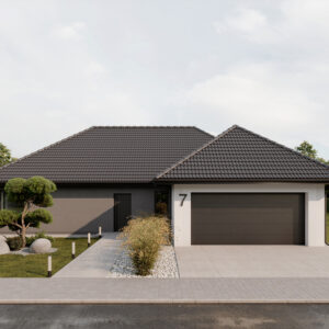 Wyjątkowy dom dla osób ceniących przestrzeń, światło i elegancję. Układ pomieszczeń został zaprojektowany z myślą o codziennej wygodzie i prywatności domowników, jednocześnie oferując przestrzeń, która robi wrażenie. Centralnym punktem domu jest przestronny salon z jadalnią o imponującej powierzchni ponad 35 m². Trzy sypialnie, dwie garderoby, osobna spiżarnia przy kuchni oraz garaż dwustanowiskowy zapewniają wygodę na najwyższym poziomie. Całość uzupełnia starannie zaplanowana strefa techniczna. To projekt, który łączy nowoczesny styl z funkcjonalnością, oferując codzienny komfort w prawdziwie prestiżowym wydaniu.